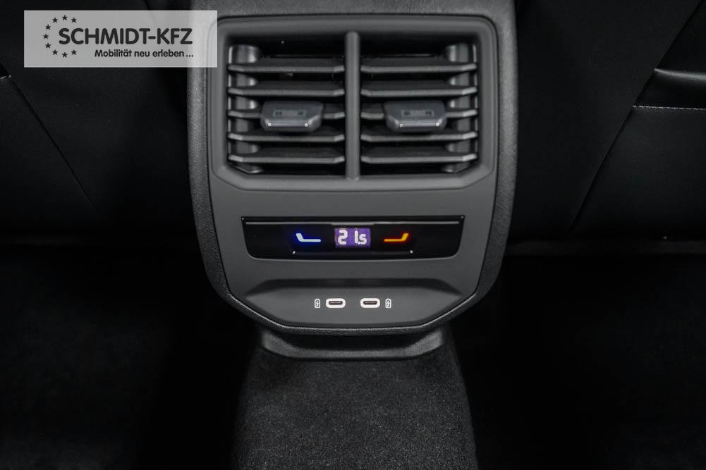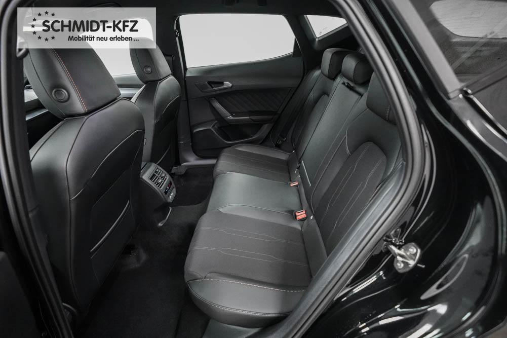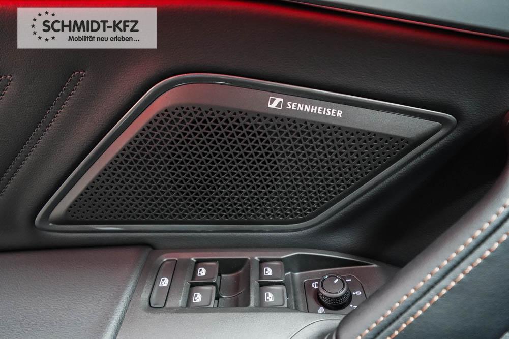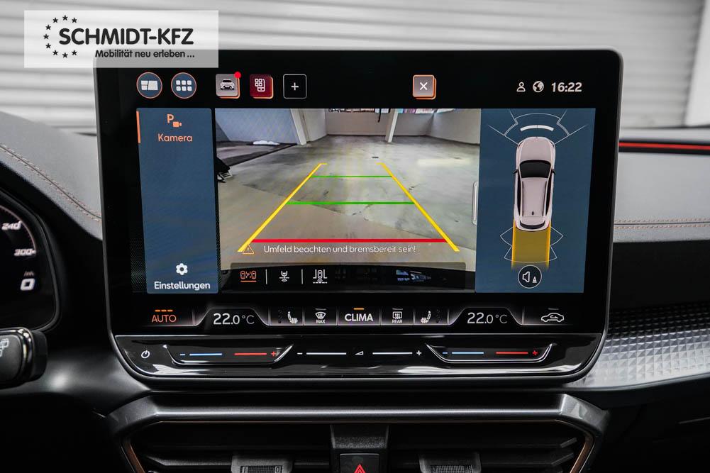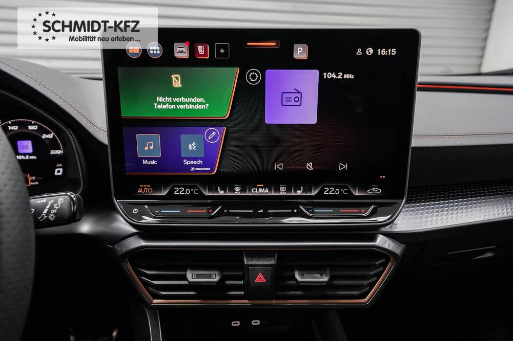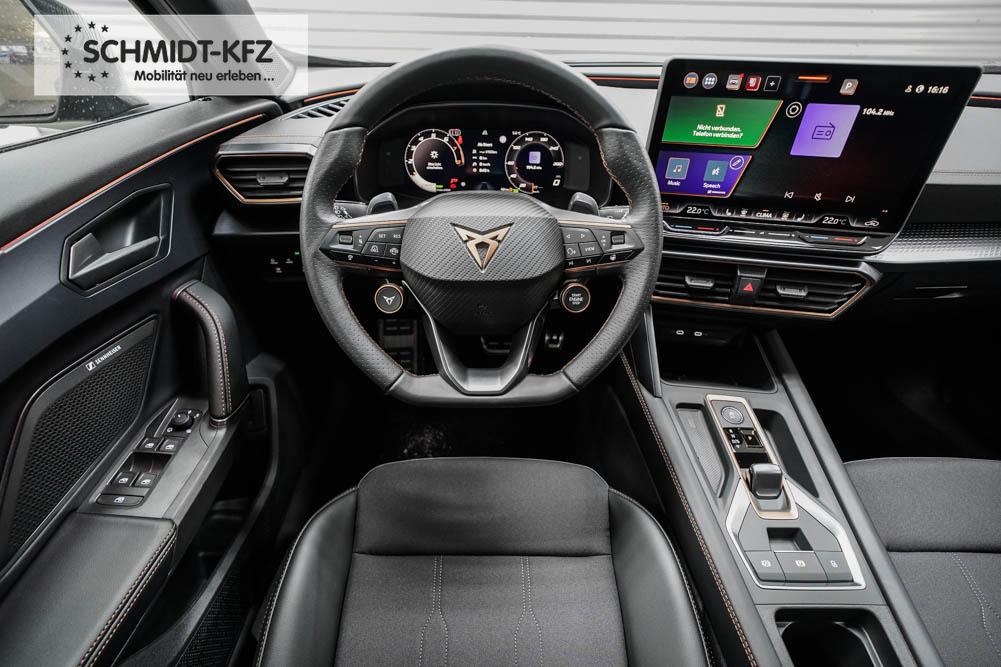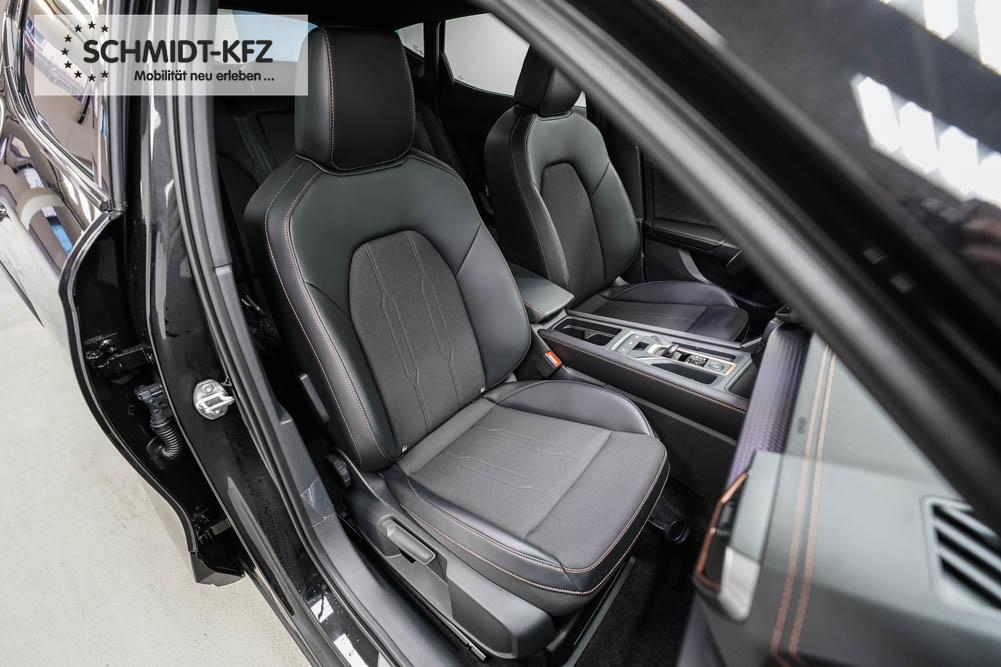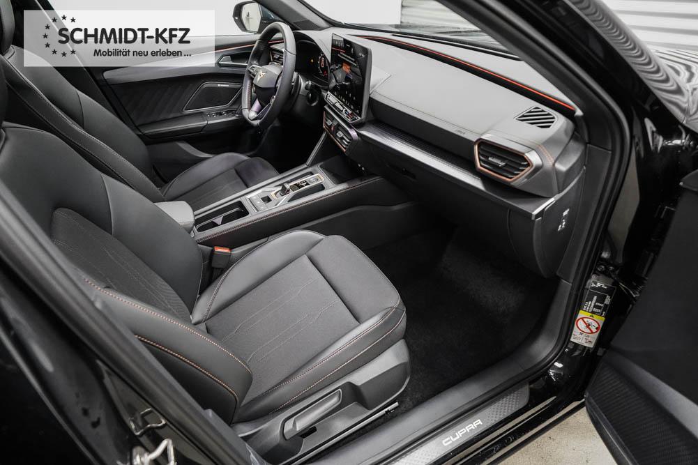 Beifahrersitz höhenverstellbar, Fahrersitz höhenverstellbar, Lederlenkrad, Lendenwirbelstütze, Mittelarmlehne vorne, Sitzbezug Stoff, geteilt umklappbare Rücksitzlehne, Lenkrad höhenverstellbar, Smart Wraparound Interieur Light, Beheizbares Lenkrad, Multifunktionslenkrad, Isofix, Isofix Beifahrersitz, abgedunkelte Scheiben, 18 Zoll Alufelgen , Dachreling schwarz, ABS, Alarmanlage, Außenspiegel elektrisch einstell-/anklappbar, Fensterheber elektrisch, Kopfairbags, Nebelscheinwerfer, Seitenairbags, Servolenkung, Sitzheizung, ESP, Wegfahrsperre, Außenspiegel beheizbar, Beifahrerairbag, Fahrerairbag, Parkpilot hinten, Parkpilot vorne, Reifendruckkontrolle, Regensensor, Lichtsensor, Digital Cockpit, Anhängekupplung schwenkbar, Tempomat Abstand ACC, Spurhalteassistent, Verkehrszeichenerkennung, LED-Scheinwerfer, Tagfahrlicht, Rückfahrkamera, Elektrische Heckklappe inkl. Virtual Pedal, KeylessEntry, StartStopSystem, Innenspiegel automatisch abbl., Müdigkeitswarnsystem, Notrufsystem, Schaltwippen, Klimaautomatik 3-Zonen, Geschwindigkeitsbegrenzer, Android Auto, Apple Carplay, Freisprecheinrichtung, Induktionsladestation, Sprachsteuerung, USB, Radio, Radio DAB, Bluetooth, Bordcomputer, IMMERSIVE by Sennheiser, Full Link, Cupra Full Link, variabler Ladeboden,